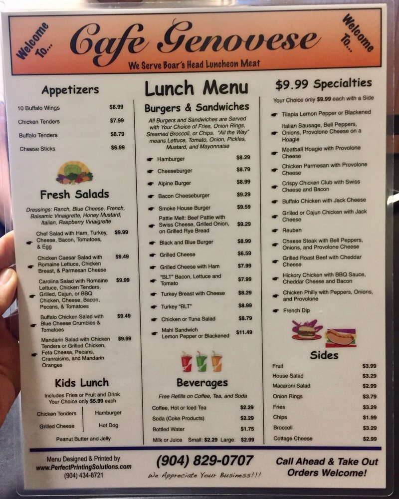 For more information, give them a call at (904) 829-0707. Join the local community at Cafe Genovese, where every meal feels like coming home.
